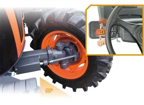 久保田拖拉机拥有55度大转向角,转弯更为快捷,缩短作业时间、降低燃油消耗、 提高工作效率。(注M854- KS(G4)和M854 -KQS(G4)的最大转向角为50度)