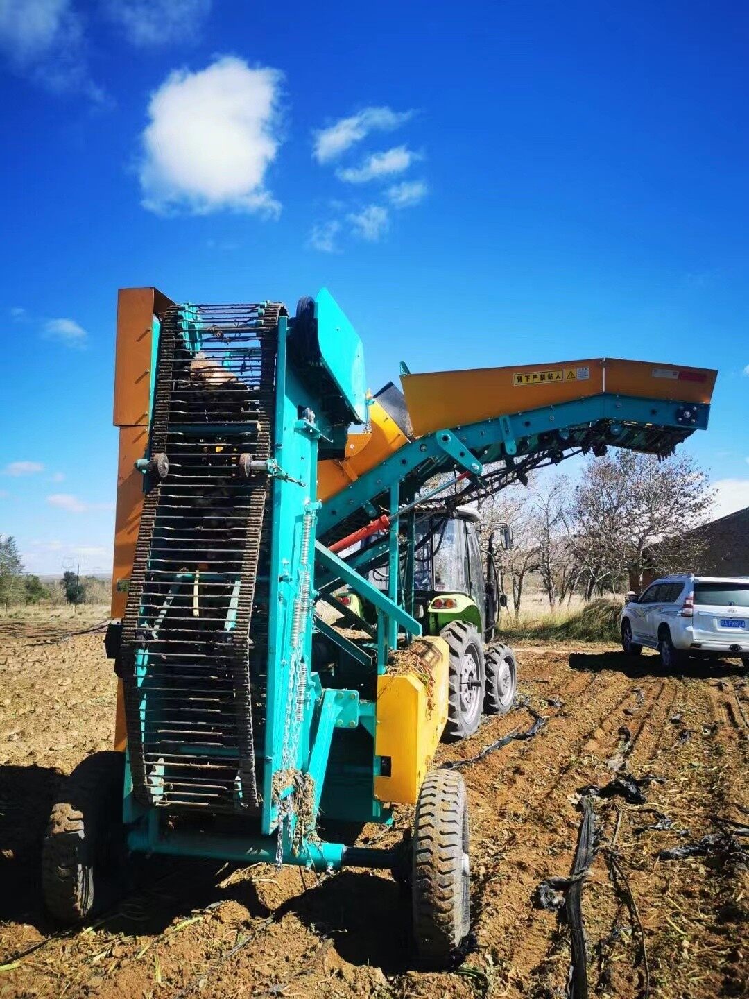 两行甜菜联合收获机,50马力拖拉机即可使用,每天作业60亩左右。四行甜菜联合收获机,120马力以上拖拉机使用,每天可作业100多亩。
