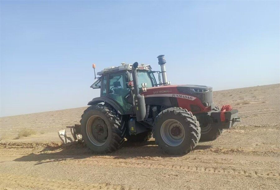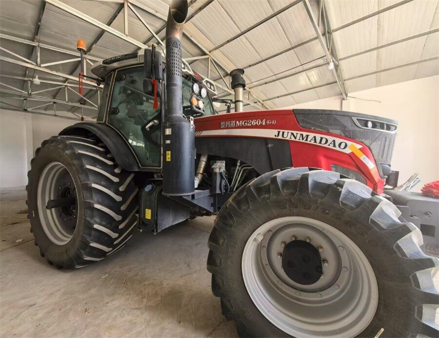 在金塔县农机服务从业者李玉新的车库里,一台大红色的的骏玛道MG2604拖拉机格外醒目。这位54岁的资深机手于2025年初购入该设备,目前已累计完成3000余亩耕整地作业。