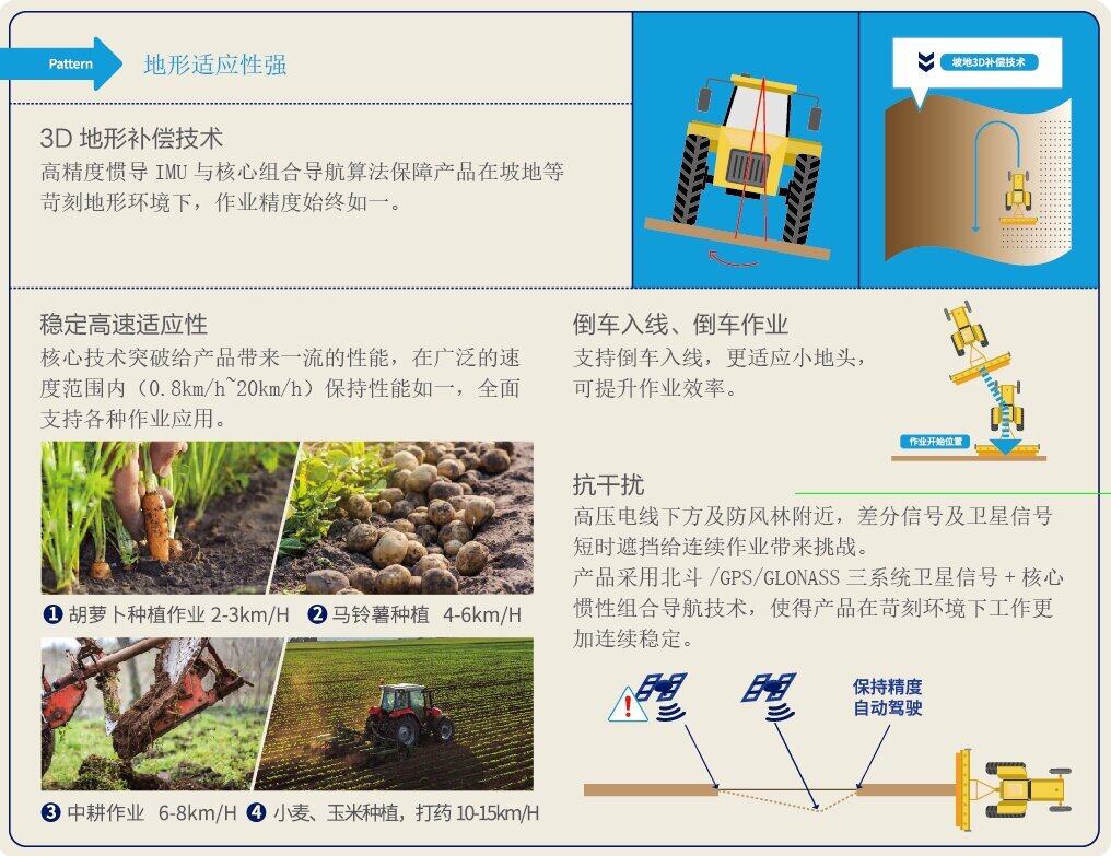 ⑤大角度坡地补偿:完全解锁坡地角度限制,补偿角度可达30°以上 ,交接行精度始终一致;