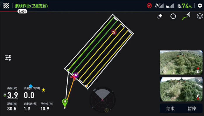 全新智能航线模式,自主规划每次作业的**佳航线。配合连续式液位计,实时掌握剩余药量,预测换药点,实现**优药电匹配。自动扫边,喷洒覆盖更全面,植保作业更轻松。