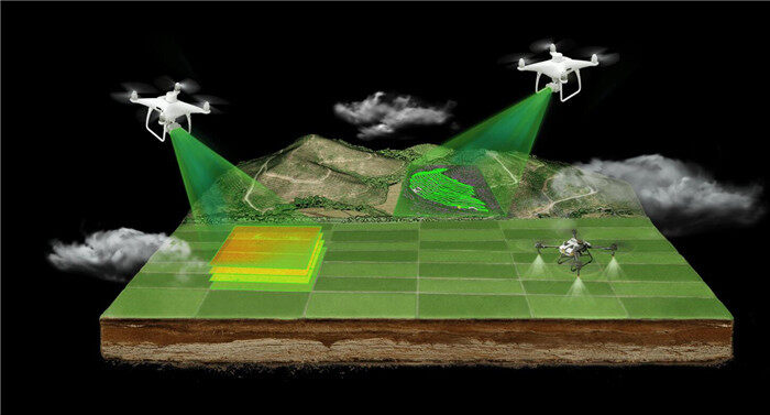 通过智慧农业云平台即可直接对果树、农田场景进行云端建图,生成智能作业航线。数字农田解决方案搭载 AI 识别系统,可高效巡田,识别作物长势,监控病虫害,对农情进行监测。搭配精灵 4 多光谱版,结合农田处方图,实现精准变量施肥。