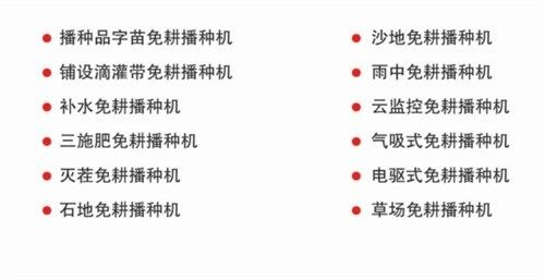 基本机型7种,变型机型12种,满足了不同保护性耕作模式、配套动力、经营规模、土壤条件、作物品种的需要 。