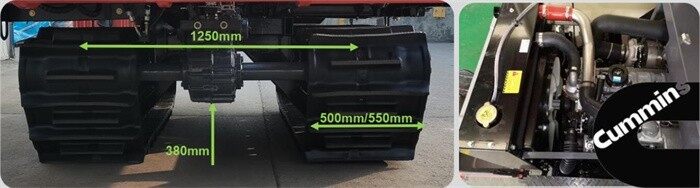 2、宽幅高齿长接地履带500/550*90*54,防滑优,驱动强。