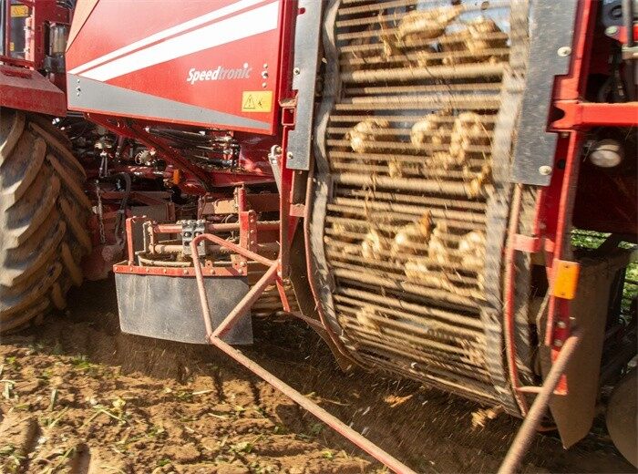 液压驱动的轮式挖掘铲极其轻柔地挖起作物,且土壤附着物很少。