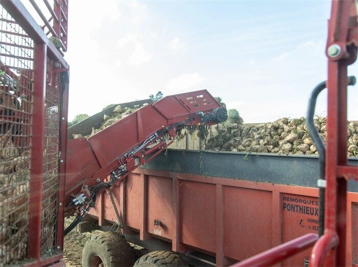 由于其自重低,恒定切顶器可以更灵活地向上和向下作业。要么所有甜菜的切顶大小都相同,要么根据甜菜大小进行个性化削顶。这意味着大甜菜的切除部分大一些,小甜菜的切除部分小一些。