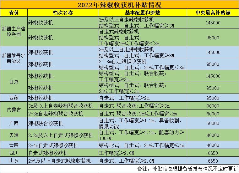 谷耘丰4AZ-2200自走式辣椒收获机2023年补贴额度