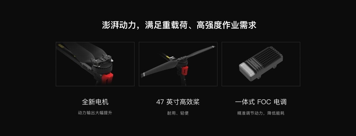 高效播撒 280 千克/组电池循环① | 精准喷洒 60 - 400 微米离心雾化 | 智能测绘 200 亩 13 分钟出图② |