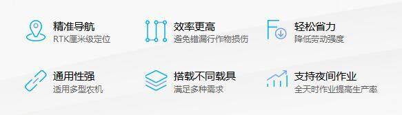 极飞自动驾驶仪,搭载行业**的 SUPERX®3 Pro RTK 控制系统,基于全球规模**大的农田导航网络,赋予农机厘米级自动驾驶能力,实现固定道精准作业,有效避免因错行、漏行导致的土地和作物损伤,