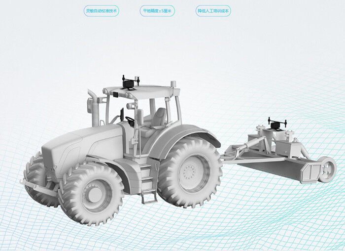 使用极飞驾驶仪的智能农机,通过挂载极飞智能平地仪,可实现高达±5厘米的平地精度。平地仪可实时接收RTK信号, 利用液压伸缩自动校准技术,达到标准化、稳定、均匀的平地作业效果。
