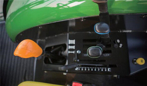 驾驶室宽敞舒适,视野极佳,密封性能好,噪音低至88分贝。人机工程学设计,操纵简便合理。舒适坐椅,可方便进行水平及舒适度调节。高配机型同时提供带扶手的豪华座椅;高配和舒适机型配有豪华冷暖空调,豪华机型配有可调角度、长度方向盘,降低驾驶员的疲劳感,提升工作效率,延长工作时间;高配机型配有右门、前后雨刷及喷淋器、12V电源、杯托、两个额外前工作灯等配置;干式离合为杆式机械操控,湿式离合为旋钮式电液操控,操控方便。