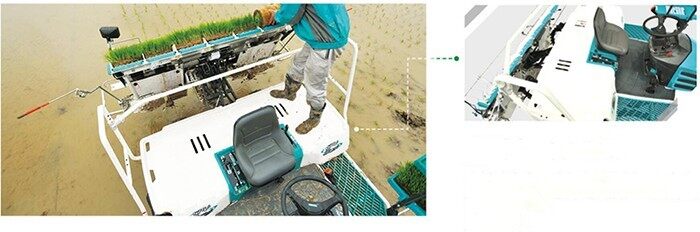 后踏板宽阔平坦,既可以装载更多的秧苗,又方便加秧和辅助作业。同时也保障了驾驶员的安全,提升工作效率。