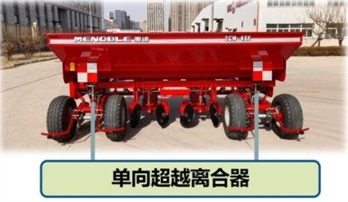 ●地轮分左右两组通过传动轴将动力传递至侧面驱动链轮,设有单向超越离合器,当一组地轮出现打滑情况时,另一组地轮仍可以保证播种机的正常工作;
