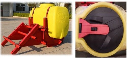 ●药箱挂接在拖拉机前面配重位置,通用型药箱挂架可匹配各型拖拉机前配重,免去了用户现场改装的烦恼,