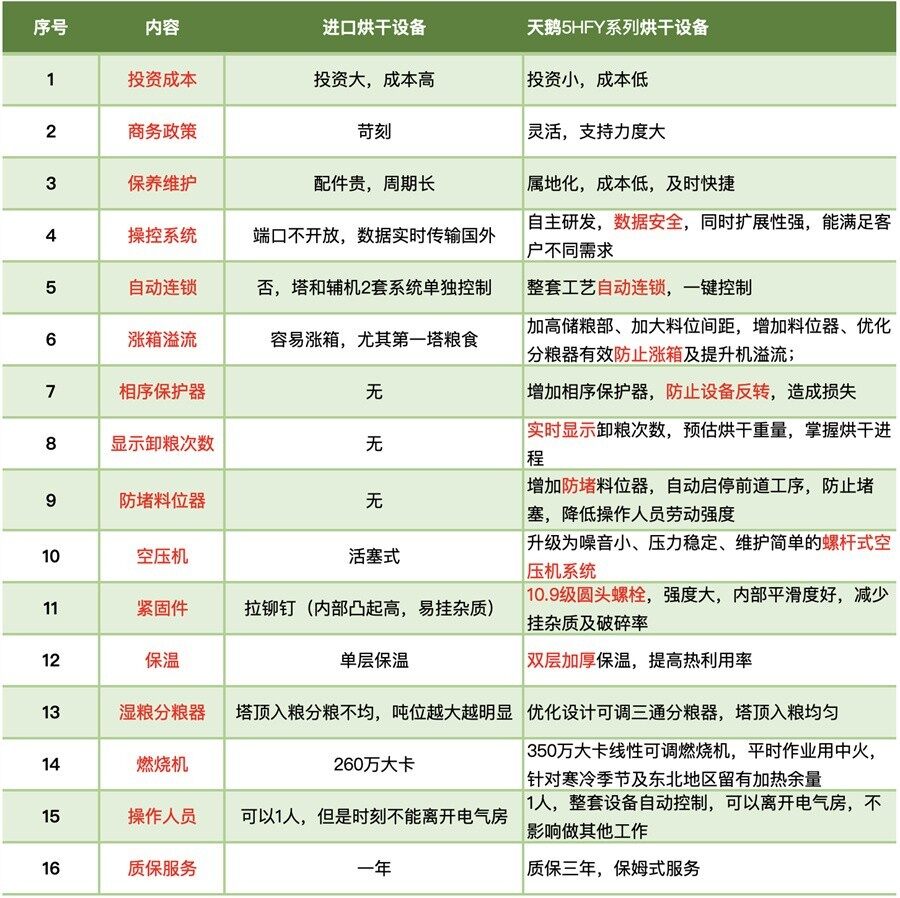 1、与进口烘干设备对比:
