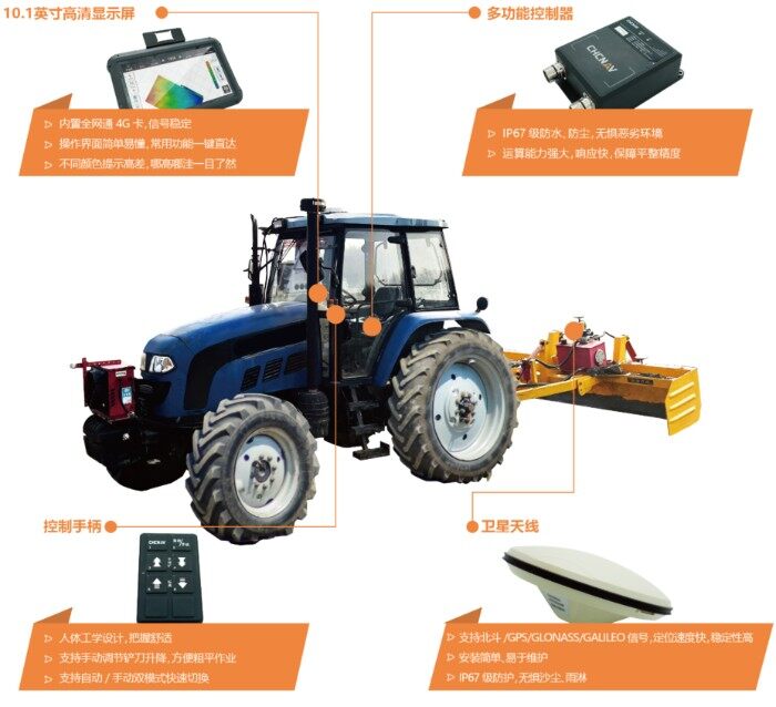 华测IC100北斗卫星平地系统是一款利用卫星定位技术全自动平整土地的农具控制系统。它集成差分定位技术、电液控制技术于一体,实现了识别实时高程并且自动升降铲刀的平地功能,支持两路阀平地铲以及多路阀铲运机。该系统支持北斗、GPS、GLONASS及GALILEO多星频定位系统,可一键定高,绕地定高,坡面等多种作业模式,可应用于荒地复耕、坡地改水田、水田平整等土地平整项目,也可以用于水利建设等,为客户创造更大价值。