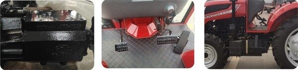 3、四柱式加大门玻璃驾驶室、侧置加大燃油箱、拉线式双路阀。
