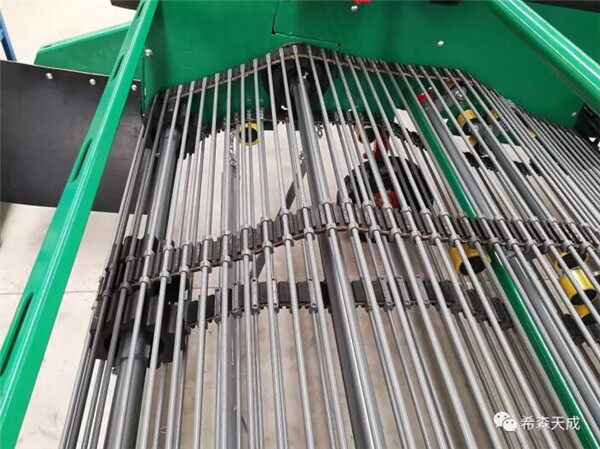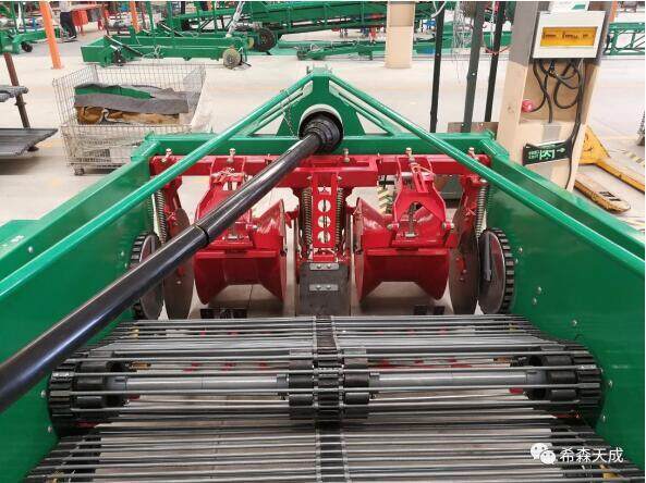 4UX-170A型马铃薯收获机是希森天成先后与国家马铃薯工程技术研究中心、山东理工大学等科研院所密切合作,联合攻关,研发的一种被广泛应用于马铃薯收获的大中型机械装备。这款收获机是在4UX-170.1的基础上改为下输送薯块,降低薯块落地高度,现在后驱动轴与地面的**低高度为380mm,集薯挡板也是分散集薯,落地后薯块呈分散状,这样大大降低了伤薯率,同时还具有行距可调,能够薯土分离、具有明薯率高等先进特性,技术水平明显优于市场同类产品。