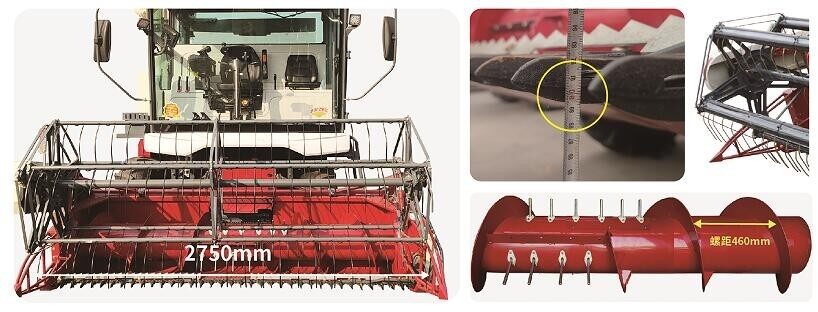 割台采用2750mm割幅设计(可选配2600割台),割刀高度提升至90cm。