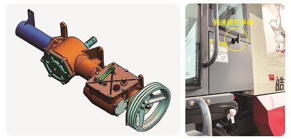 采用三档转速可调传动箱,转速分别为630/450/365,应对不同杂粮收割。