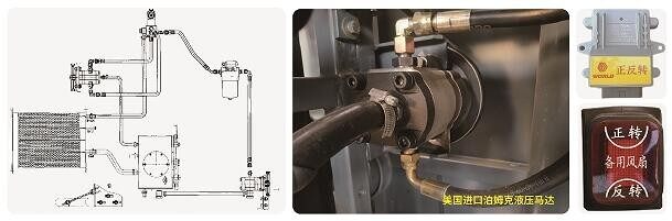 将传统水箱风扇升级为液压驱动正反转风机,自动清理水箱网罩积灰,完美解决高温问题,并配备手动正反转模式。