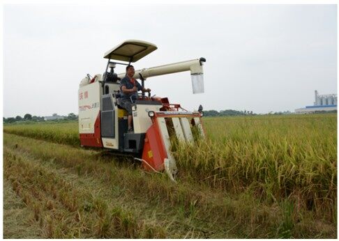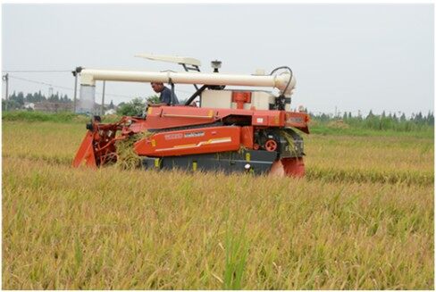半喂入由于只是稻穗进滚筒,稻杆不入滚筒。因此在收割青杆作物时,能有效的避免稻杆中带来的水分,减少粮食损失,降低了破碎率。