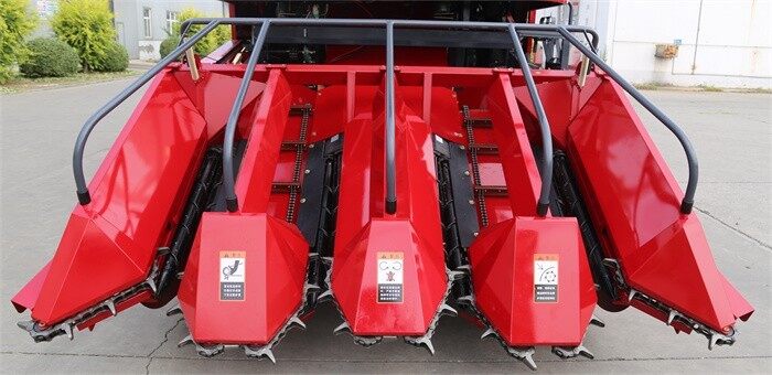 ●割台摘穗快、动力消耗少、效率高;专用扶禾器,强制喂入,不对垄收割,适合跨区作业,高回报率;