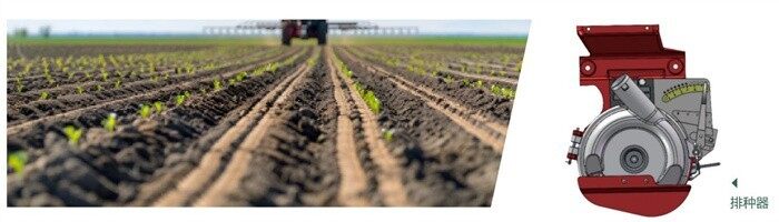 >排种器由铝合金精铸而成,配有双划和器,精准度高,强度大。